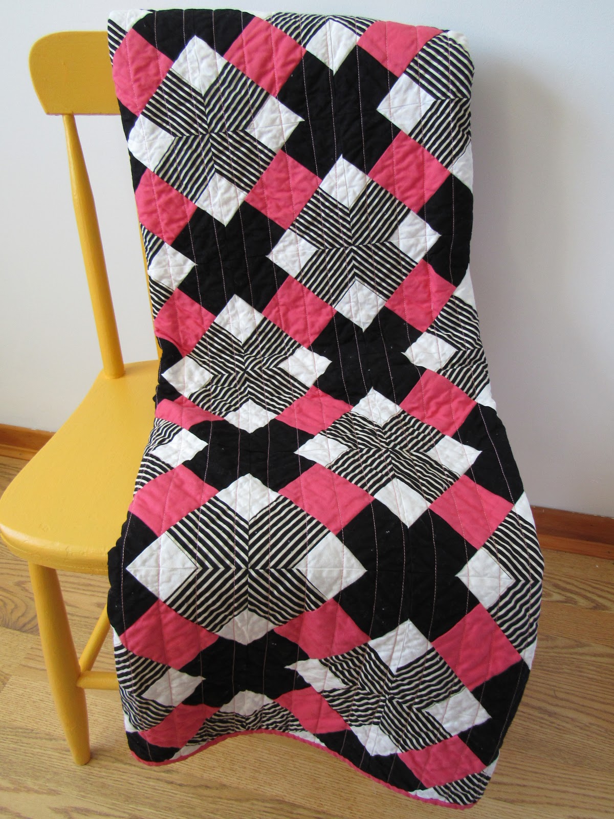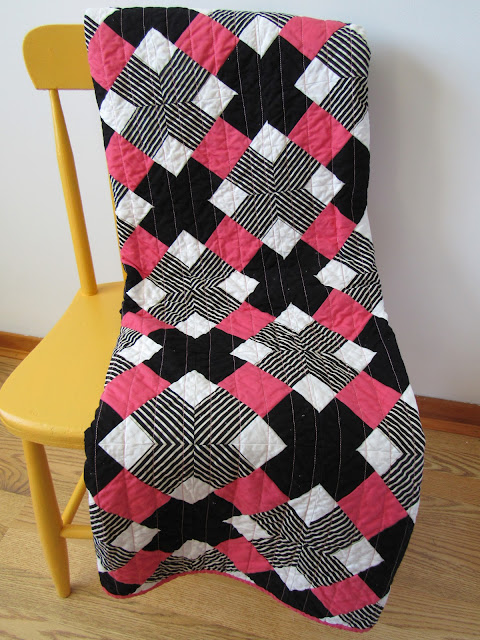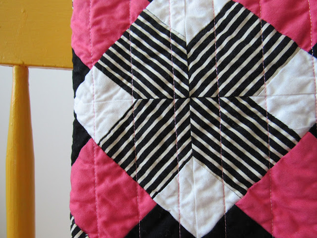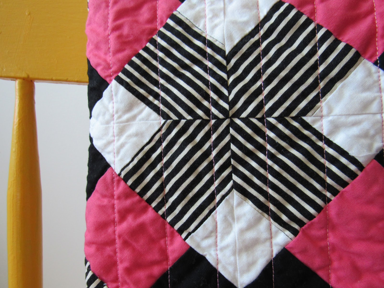 And now...Kriss Kross! I love this quilt. The stripes, the Kona Punch, the 40 Weight Pink quilting. All. Of. It.