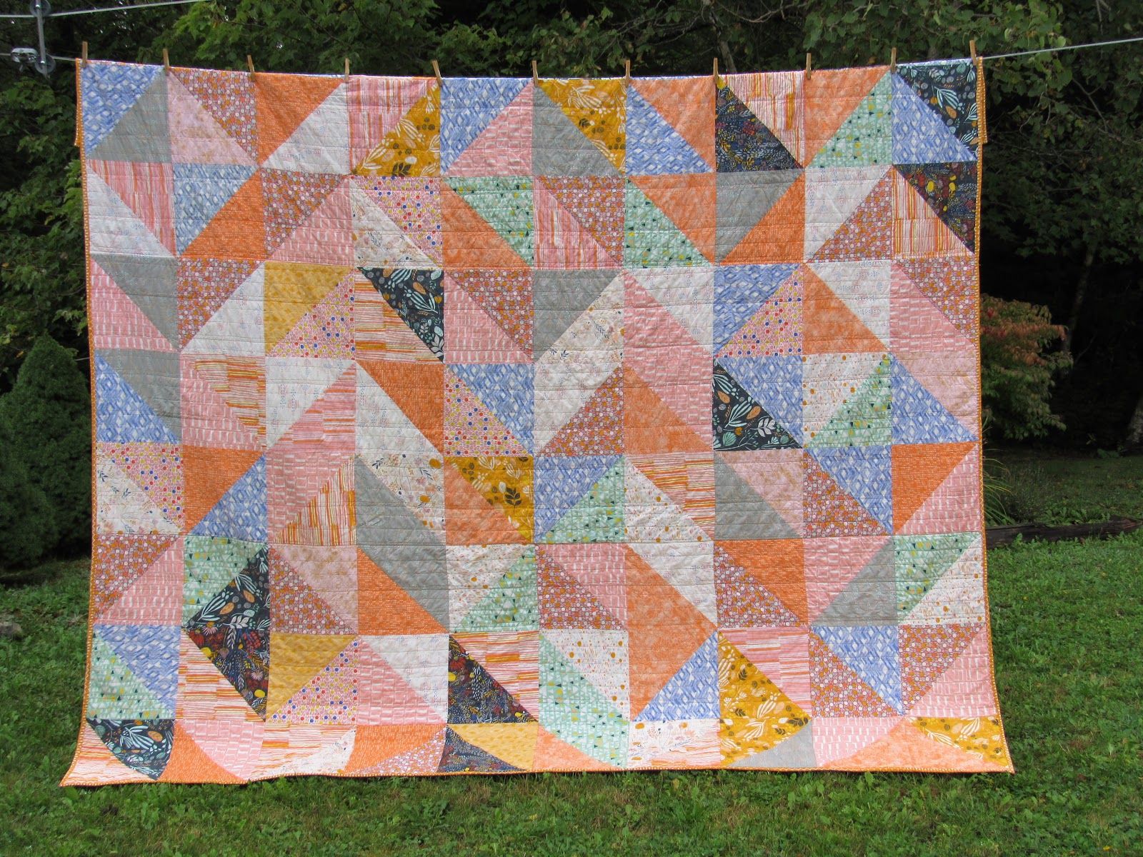 HSTs are one of my very favorite quilting blocks. In Jeni Bakers book The Half-Square Triangle she has a pattern for a Vast Quilt, which is basically large HSTs. Perfect! I cut my HSTs as large as my yardage would allow and I was off!