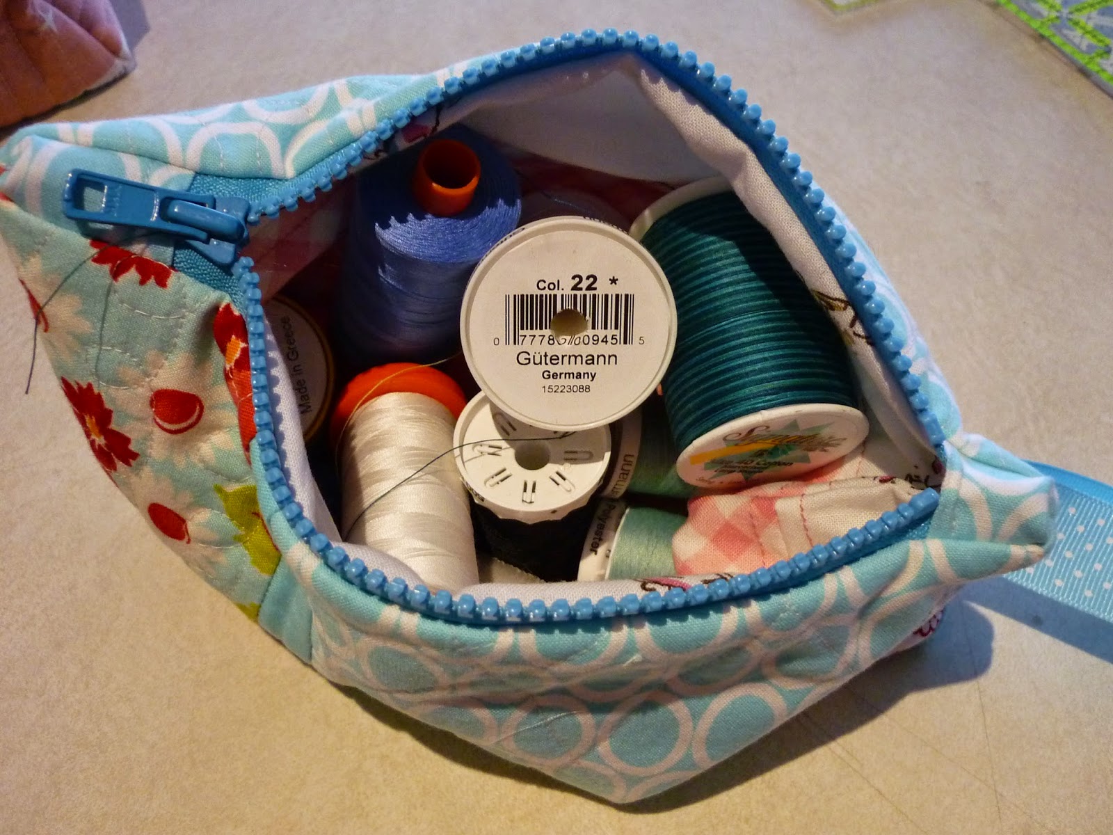 In the other, I had thread. Now I don't always carry a pouch full of thread, but I usually always have at least a spool on my machine and a back up in my supplies. Yesterday I was also planning on quilting but had not decided on pattern or thread so I brought a variety for a consult with my guild friends.