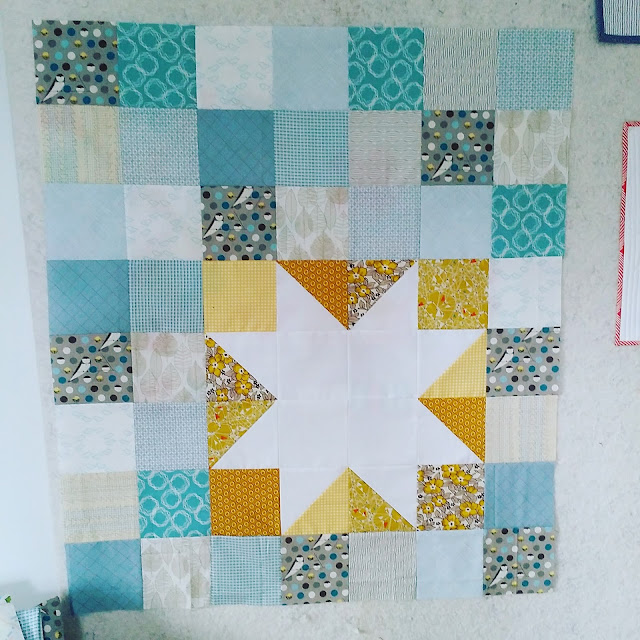 This year is turning out to be the year of the square in square blocks. Like 2015 was the year of the HST. Funny how these things happen. The pic below is a square in square top ready for chain piecing that I just put on the design board tonight. This quilt will be donated with other MMQG Quilts to our local childrens Hospital the IWK.